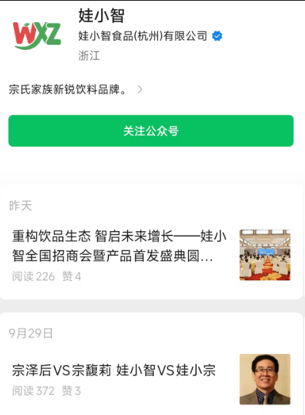 娃小宗官号0内容涨粉6000,宗馥莉叔叔推出“娃小智”对打“娃小宗”