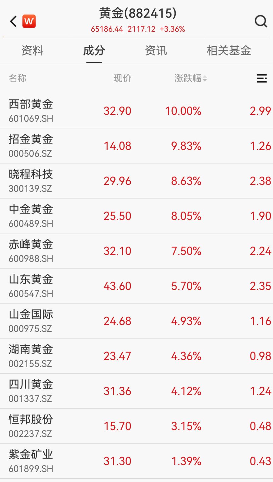 黄金板块保持坚挺,截至收盘,西部黄金涨停,招金黄金、晓程科技、中金黄金、赤峰黄金等多股涨超5%。