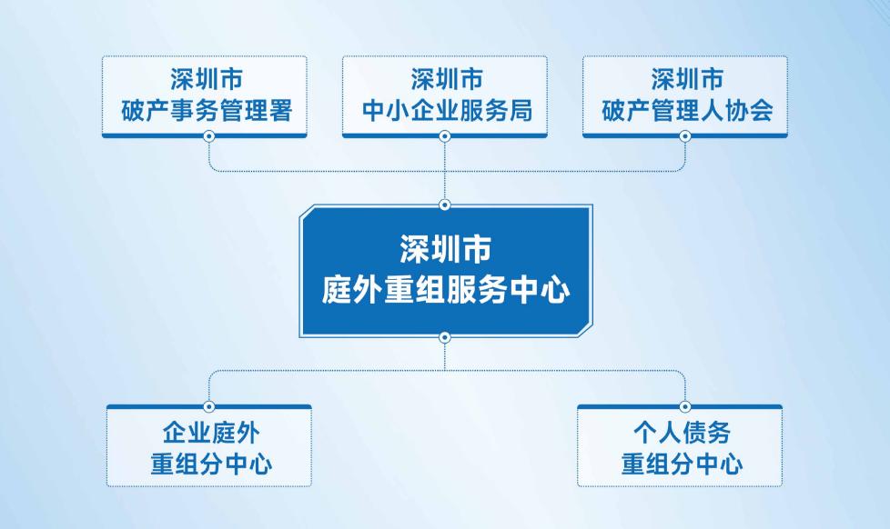 企业和个人债务往往具有一定关联性,合并考虑和处理效率更高、也更为彻底。深圳市庭外重组服务中心充分运用了深圳率先开展个人破产制度改革试点、推进破产制度和机制综合配套改革的政策优势,在国内率先推动了企业重组机制和个人破产制度协同创新发展。庭外重组服务中心下设企业庭外重组、个人债务重组两个分中心,将同时面向陷入财务困境的企业和个人提供债务清理服务,是国内首个“一站式”提供企业债务重组和个人破产公共服务的平台,能为困境企业和关联企业家、民营经济人士同步走出财务困境提供机会和渠道,助力相关债务清理“一站式服务”和“一揽子解决”。