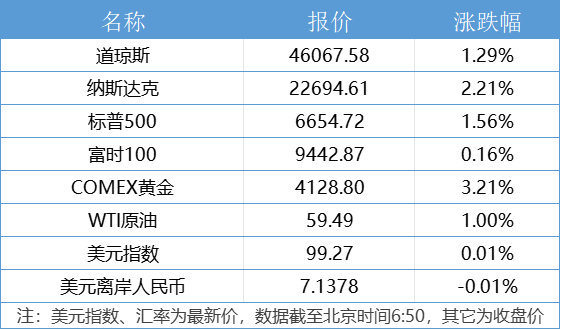 1、美国三大股指全线收涨,道指涨1.29%,标普500指数涨1.56%,纳指涨2.21%。耐克涨超3%,高盛集团涨近3%,领涨道指。万得美国科技七巨头指数涨2.02%,特斯拉涨超5%,谷歌涨逾3%。中概股普遍上涨,纳斯达克中国金龙指数涨3.21%。世纪互联涨超10%,小马智行涨逾9%。