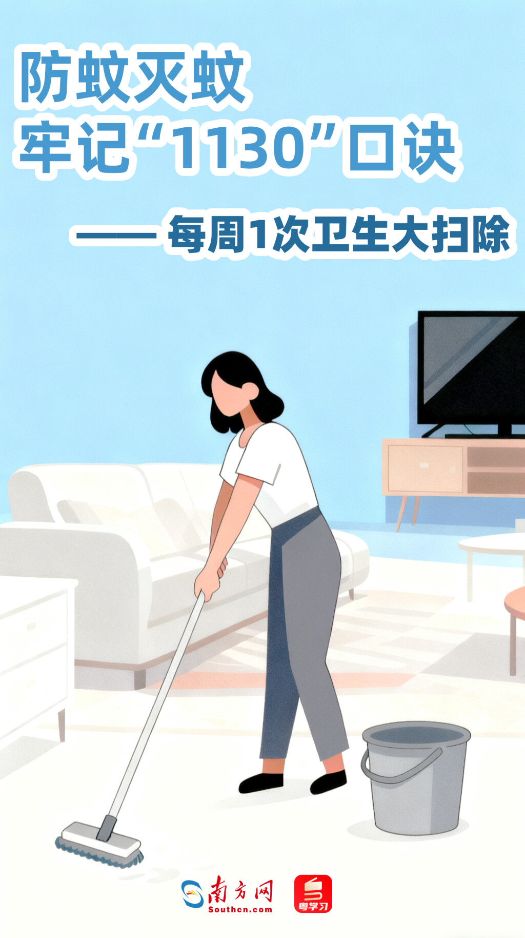 基孔肯雅热和登革热主要通过伊蚊(如白纹伊蚊、埃及伊蚊)传播,要彻底阻断伊蚊孳生,关键在于清除积水、消除孳生地。请大家牢记“1130”口诀,上下班1分钟清积水,每周1次卫生大扫除,每天3分钟排查孳生地,积极建设“0”蚊场所。