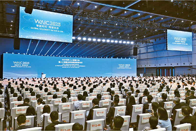 2025年7月26日,2025世界人工智能大会暨人工智能全球治理高级别会议在上海开幕。本届大会以“智能时代 同球共济”为主题,国内外嘉宾及人工智能产学研领域代表1000多人出席大会开幕式。大会发表《人工智能全球治理行动计划》。图为开幕式现场。 中新社记者 田雨昊/摄