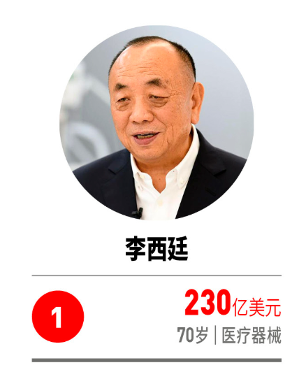 公开资料显示,74岁的李西廷是迈瑞医疗创始人兼董事长,2021年年中,迈瑞医疗股价一度超过470元/股,李西廷身家也水涨船高,2021年以230亿美元财富登顶福布斯新加坡富豪榜榜首。