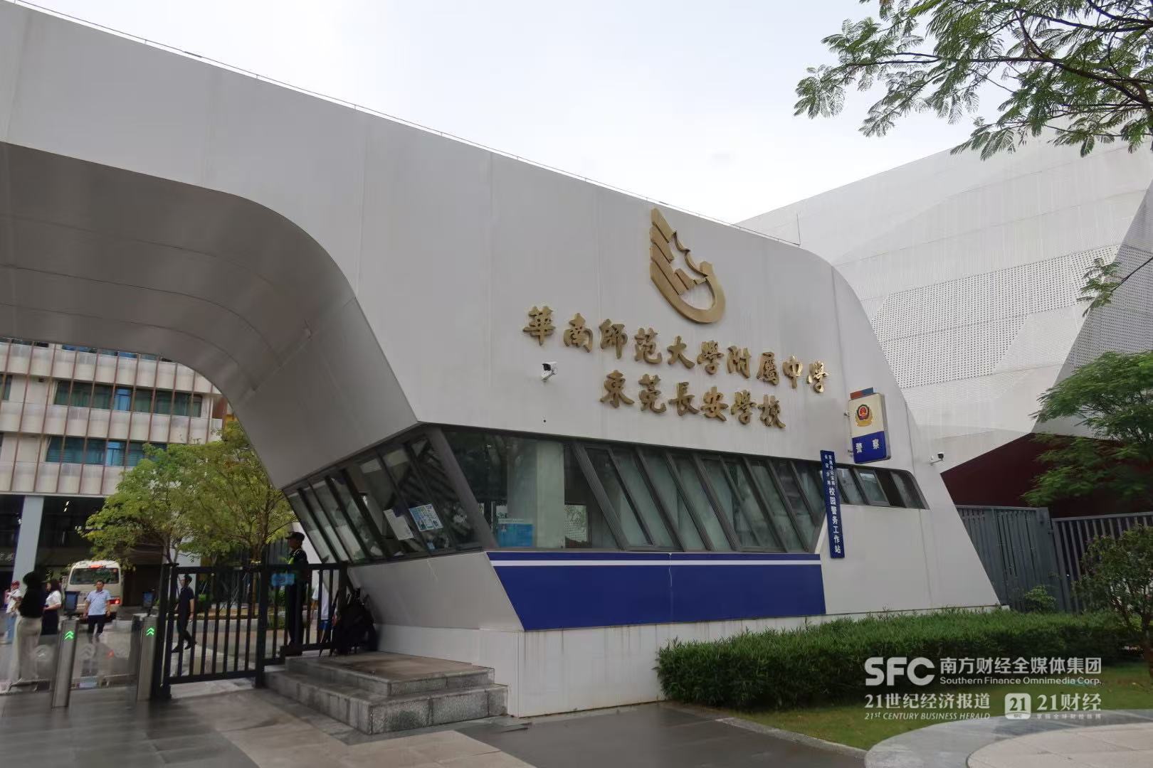 (华南师范大学附属中学东莞长安学校正门。 本报记者梁信/摄)