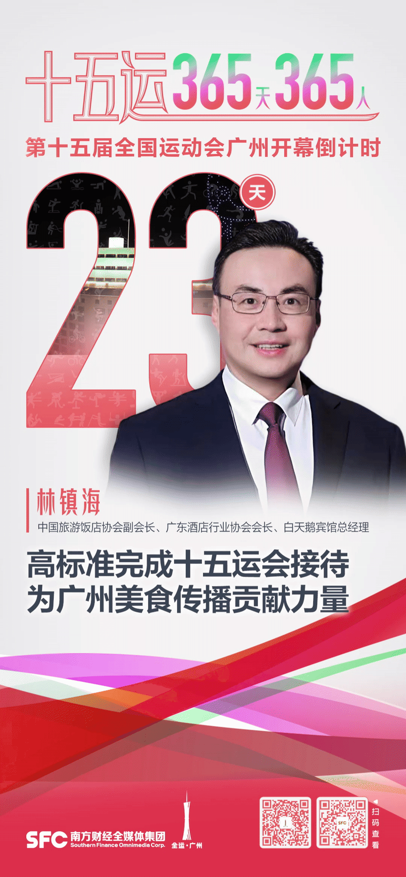 距离第十五届全国运动会开幕不足30天,中国旅游饭店协会副会长、广东酒店行业协会会长、白天鹅宾馆总经理林镇海,正带领这家“中国改革开放后首家中外合作的五星级酒店”,以美食为桥,助力十五运会的成功举办。