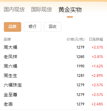 国内实物黄金市场同步升温,老凤祥、周大福、周生生等多家品牌足金首饰价格均达到1280元/克附近,较昨日均有明显上涨。另CompaniesMarketCap的数据,随着金价屡创历史新高,黄金目前的总市值已突破了30万亿美元,其成为首个总市值迈过30万亿美元大关的全球资产,在全球资产市值排行榜上断层领先。