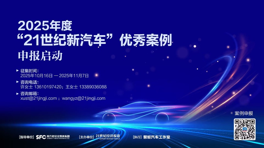 作为中国汽车产业高质量发展的观察者、记录者、参与者、推动者, 南方财经全媒体集团 21 世纪经济报道,旗下 21世纪智能汽车工作室发起“2025年度21世纪新汽车优秀案例”征集活动,面向产业内引领发展潮流的优秀主机厂、供应链公司征集案例,并邀请获选案例负责人做案例分享,为汽车行业从破局到立新提供可借鉴的大局观与方法论。