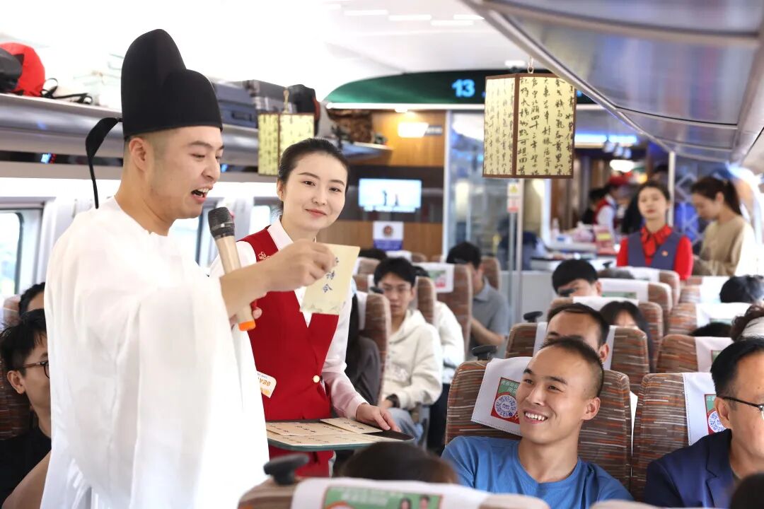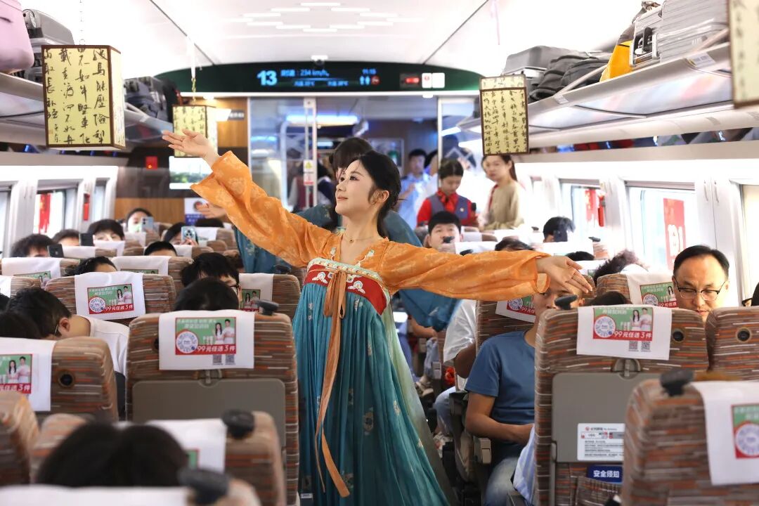 “当唐诗在车厢里响起,当家国情怀在旅途中传递,我们看到了文化传承的力量。这是铁路服务与文化传播的深度融合,我们将继续探索创新。”西安客运段列车长刘晨说。