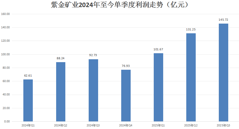 紫金矿业上周末披露的三季报显示,当期归母净利润增长55.5%至378.6亿元,其中第三季度净利润达到145.7亿元,再次刷新历史最好成绩。