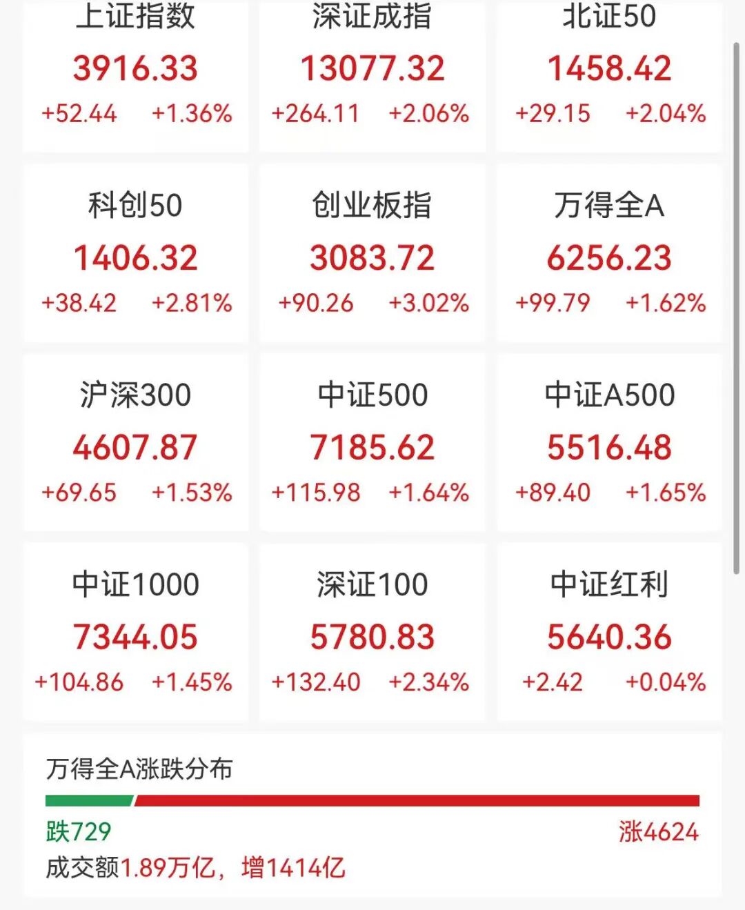 10月21日,A股三大指数集体上涨,截至收盘,上证指数涨1.36%,深证成指涨2.06%,创业板指涨3.02%,北证50涨2.04%。沪深京三市全天成交额18927亿元,较上日放量1414亿元。全市场超4600只个股上涨。