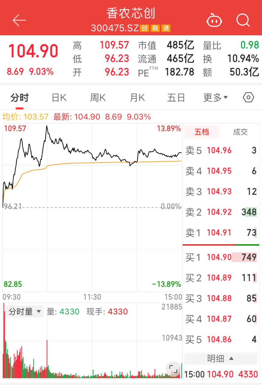 10月21日,香农芯创在前一日披露股东拟大幅减持背景下,股价盘中触及109.57元/股,续创历史新高,截至收盘报104.9元/股,涨幅高达9.03%,公司市值突破480亿元,截至目前,香农芯创年内股价已13次创历史新高,年内累计涨幅达 268.89%。