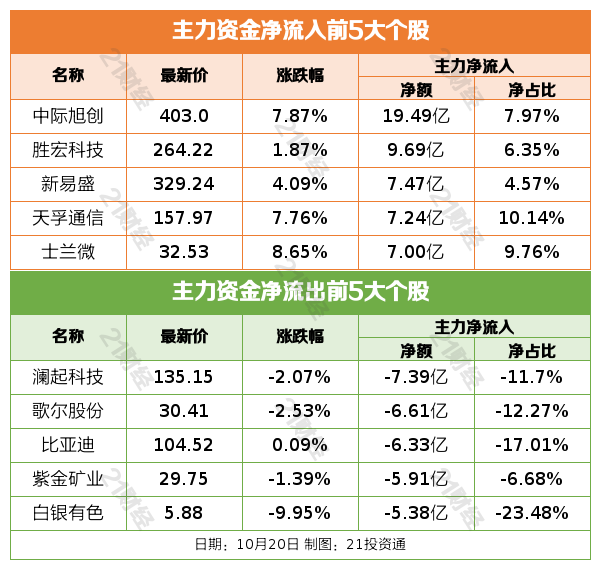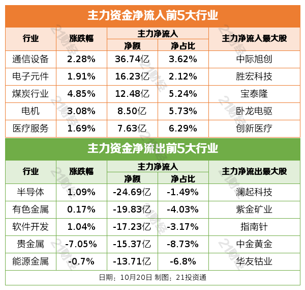 10月20日,市场冲高回落,创业板指一度涨超3%。截至收盘,沪指涨0.63%,深成指涨0.98%,创业板指涨1.98%。沪深两市成交1.74万亿,较上一个交易日缩量2005亿,成交额创8月8日以来新低。