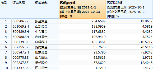 即便如此,与今年10月中旬金价处于高位时相比,Wind贵金属指数最大回撤幅度也已经达到16.37%,部分股票如恒邦股份、山东黄金、西部黄金等最大回撤幅度已超过20%。