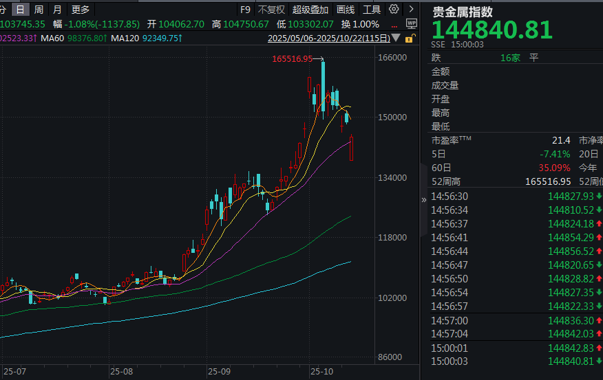 10月21日,全球贵金属市场大幅杀跌,COMEX黄金期货、伦敦金现货跌幅均超过5%,伦敦银现货跌幅更是超过7%。