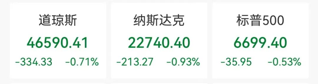周三(10月22日),美国三大股指全线收跌,道指跌0.71%,标普500指数跌0.53%,纳指跌0.93%。