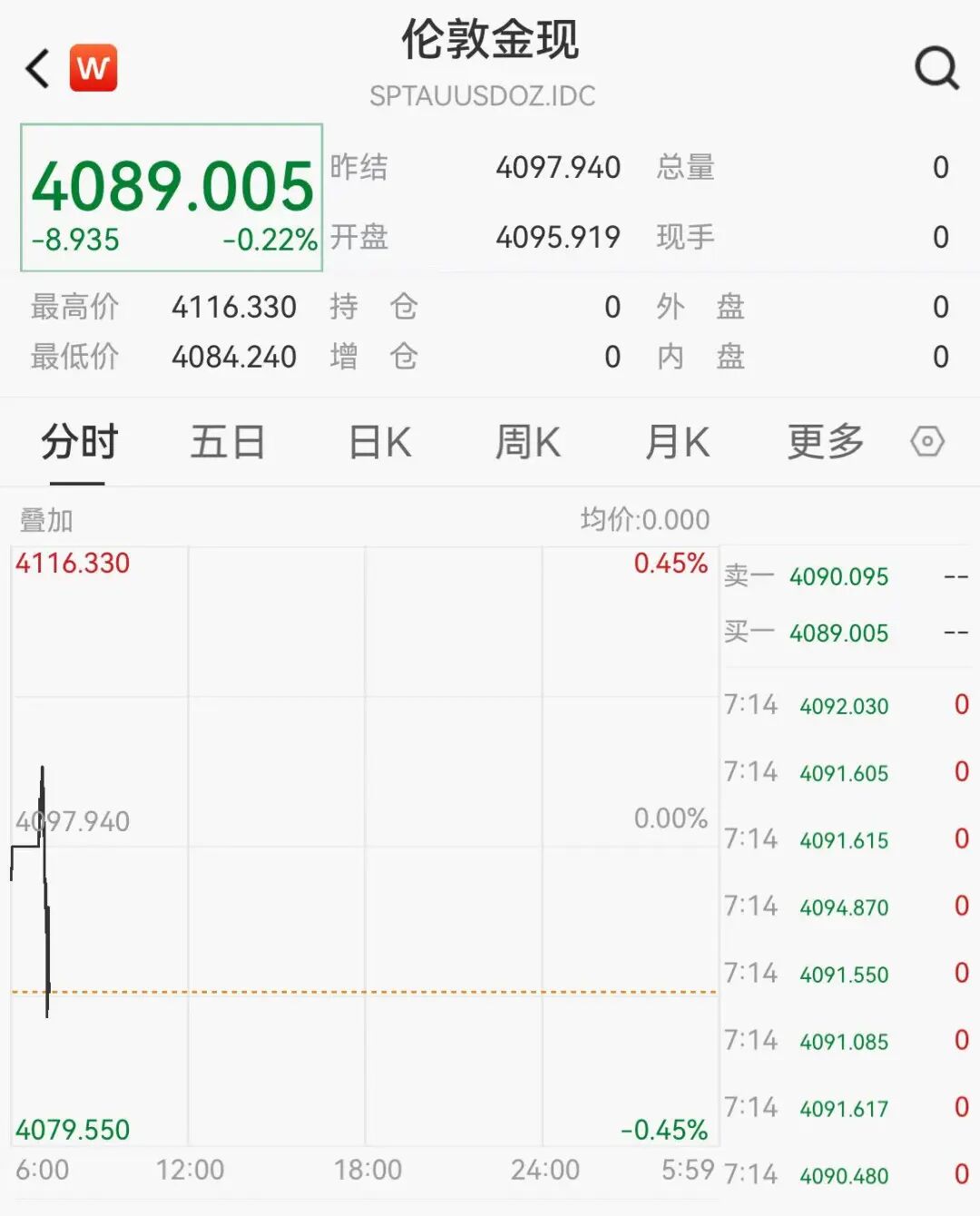 贵金属方面,黄金、白银跳水,截至发稿,黄金现货跌破4090美元/盎司关口,此前黄金现货持续下跌,盘中逼近4003.43美元/盎司低位。