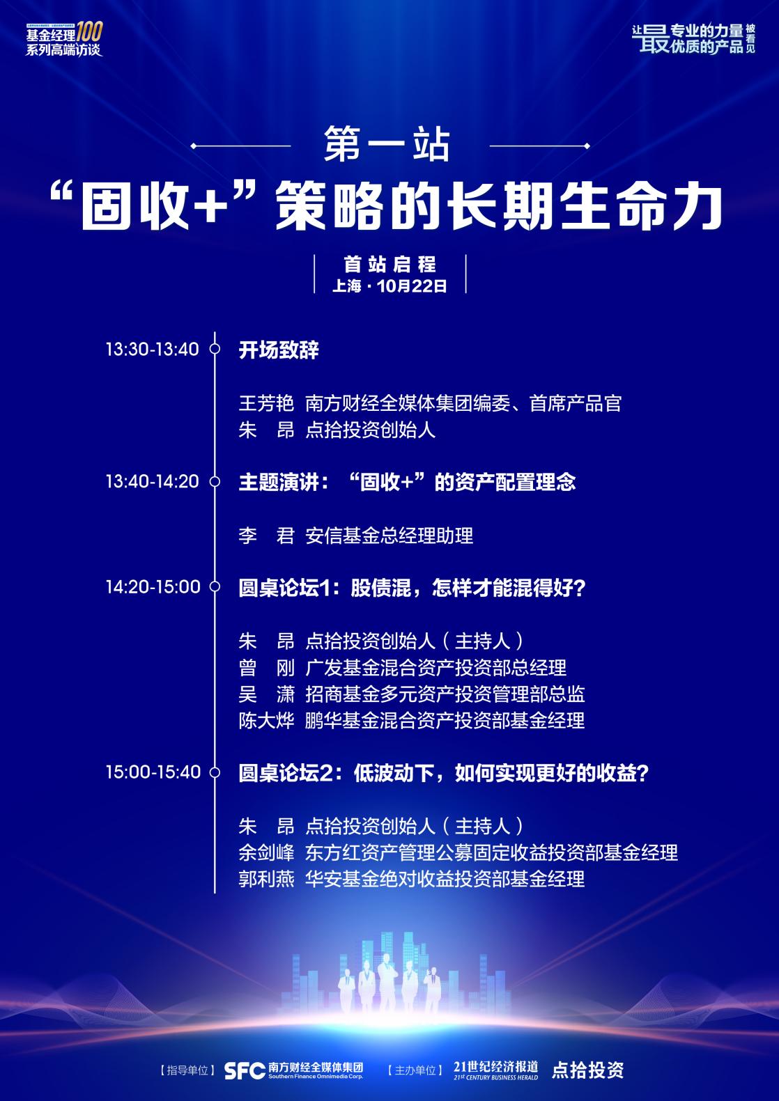 10月22日,由21世纪经济报道与点拾投资联合主办的“长期投资·价值投资——基金经理100系列高端访谈”在上海启动。