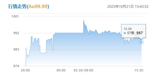 (上海黄金交易所网站10月21日AU99.99行情走势截图)