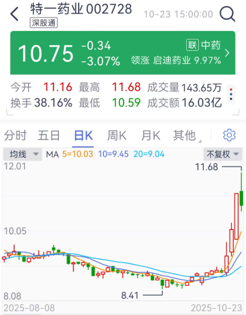 特一药业(002728)公告,公司第三季度实现营业收入2.01亿元,同比增长41.49%;归母净利润2720.94万元,同比增长719.47%。前三季度实现营业收入6.92亿元,同比增长51.86%;归母净利润6521.71万元,同比增长985.18%。报告期内,中药产品销售收入同比显著增长。