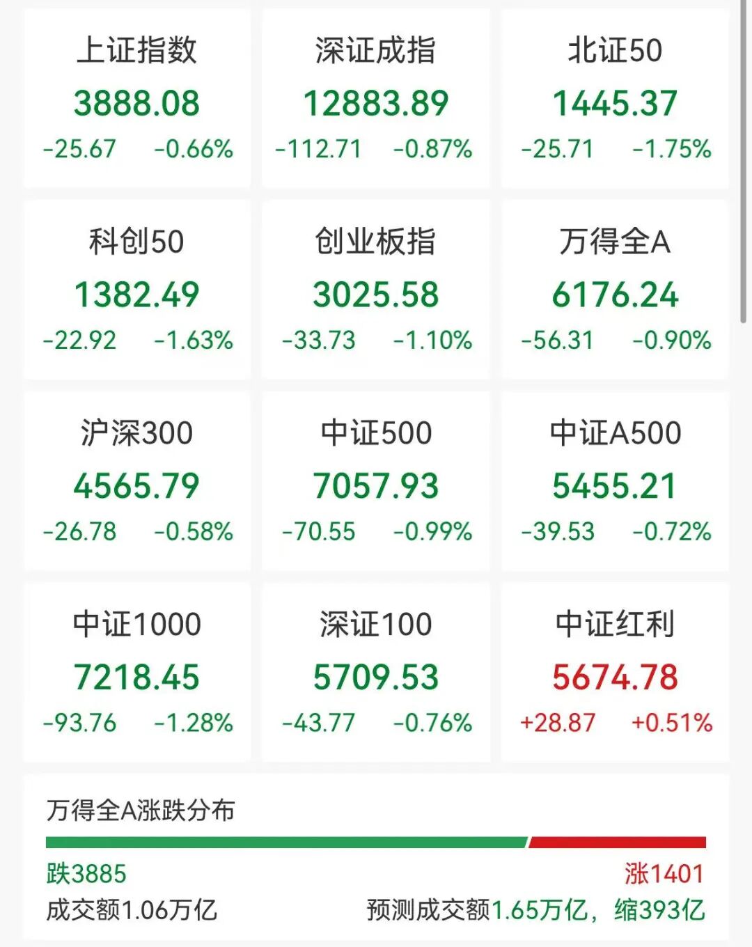 10月23日,A股震荡调整,量能再度萎缩,沪深两市半日成交额1.06万亿,较上个交易日缩量393亿。盘面上热点较为杂乱,超3800只个股下跌。