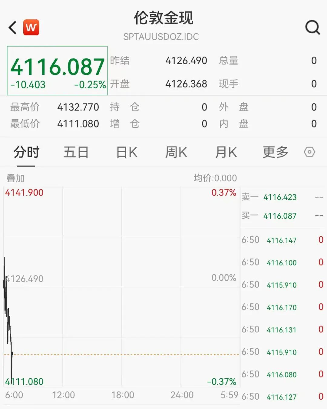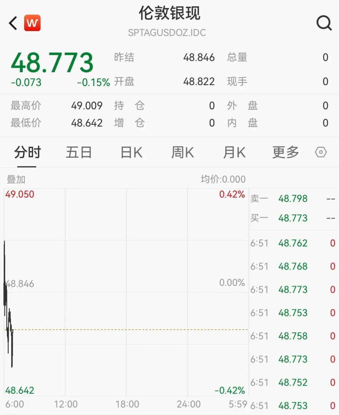 贵金属方面,截至24日6:50左右,现货黄金、白银短线跳水。