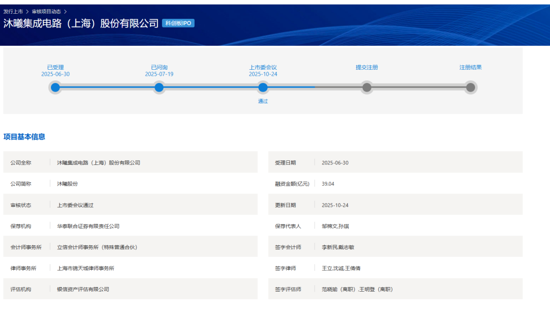 10月24日,上海证券交易所上市审核委员会审议通过沐曦集成电路(上海)股份有限公司科创板IPO申请。