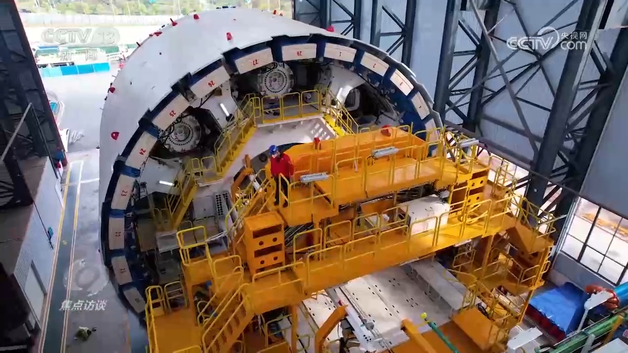 党的二十届四中全会提出,“十五五”时期要加快高水平科技自立自强,引领发展新质生产力,抢占科技发展制高点。研制“大国重器”无疑是抢占科技发展制高点的关键之举。在“十四五”时期,我国研制的“大国重器”不断“攀”高,站上了一个又一个创新制高点。天上,有“嫦娥六号”实现全球第一次月球背面无人采样返回,有第一座中国空间站“天宫”;地下,有全球领先的超大直径盾构机正在掘进。从今天(10月25日)开始,《焦点访谈》推出系列节目《大国重器再攀高》。我手边的两个模型,是我国自主研制的最大直径盾构机“江海号”和“沧渊号”,看着不大,但在施工现场它们是超过五层楼高、重量超过5000吨的“钢铁巨龙”。