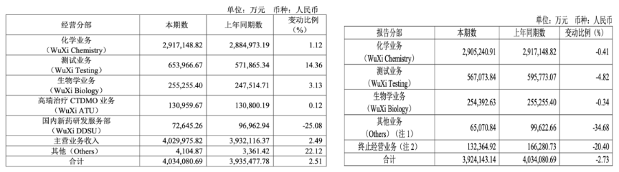 (2023年和2024年业务板块对比,图片来源:药明康德公告)