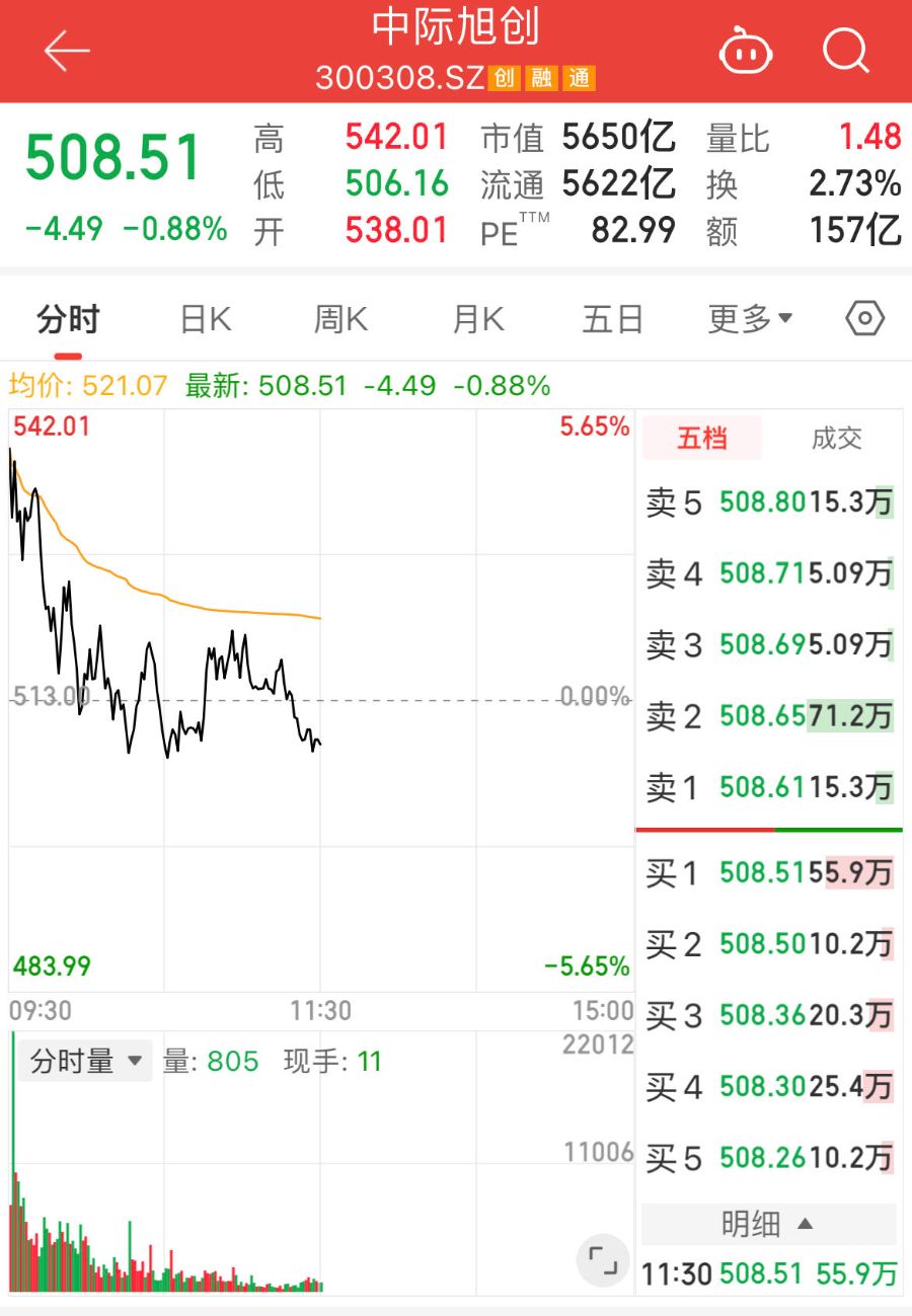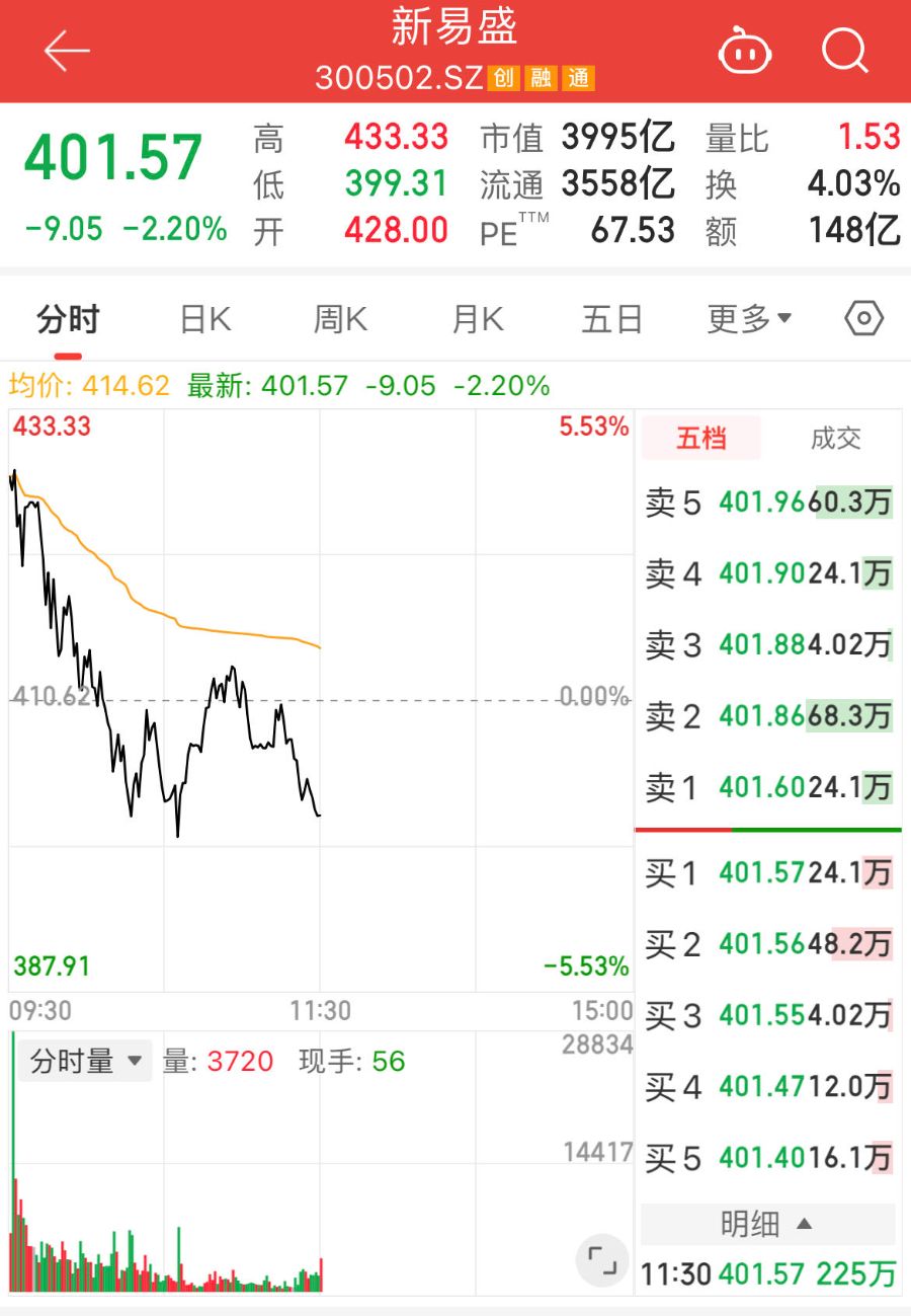 但资金获利了结情绪显现,截至午盘,新易盛翻绿下跌2.2%,报401.57元/股;中际旭创翻绿下跌0.88%,收于508.51元/股,股价均从高位明显回落。