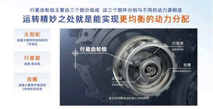 为此,广丰在发布会上官宣了“丰田智能电混双擎”——不用充电,却获得同电车般的静谧与平顺动力;小电池设计,规避热失控风险;全场景适应力,能适应极端气候与复杂路况。其行星齿轮让发动机保持高效、经济区间的同时,电机保持全速域介入,省油却不省动力、安静却不失性能,让驾驶更具电感,减少油车的顿挫与高耗。