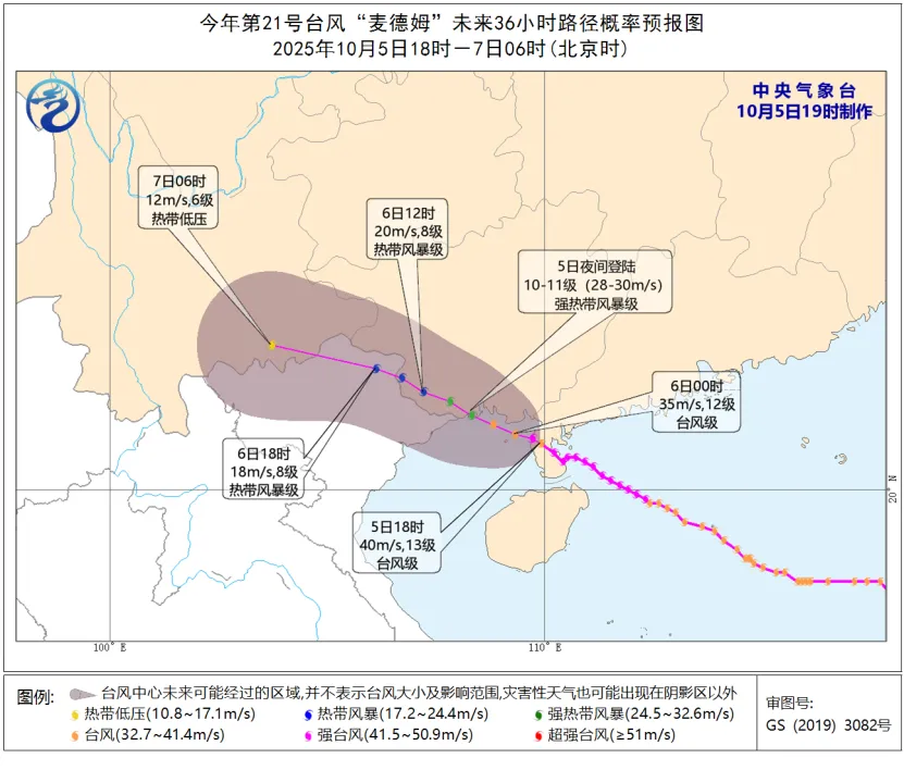 据南方+,综合中央气象台、广东省气象台消息,10月5日14时50分前后,今年第21号台风“麦德姆”在湛江市徐闻县东部沿海登陆,登陆时强度为强台风级(14级)。预计,“麦德姆”将以25公里左右的时速向西北方向移动。