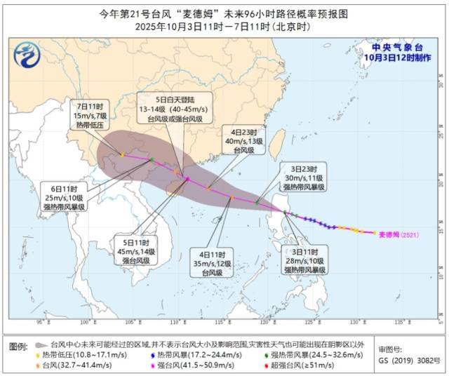 受其影响,3日夜间至7日,南海中北部海域及华南沿海有8到11级风;海南岛中北部、广东西南部、广西南部、云南东南部先后有暴雨或大暴雨,局地特大暴雨,将对假期旅游、交通等造成严重影响。