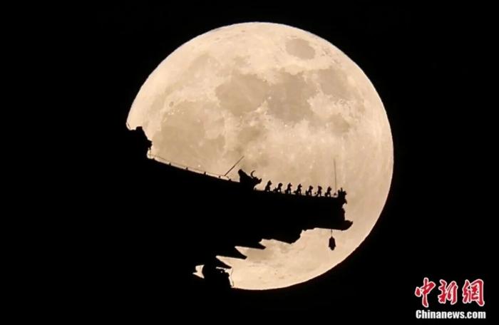 一轮“超级月亮”现身南京上空。中新社记者 泱波 摄