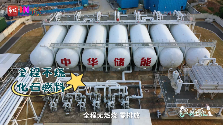 “传统压缩空气储能会有热能损耗,世界主流办法是‘补燃’,但会排放二氧化碳。”陈伟解释道,“我们的‘非补燃’技术,是将热能跟压力势能解耦,通过介质传导把热能单独储存在储热系统里,既降低损耗、提高效率,发电过程还能全程无燃烧、零排放。”