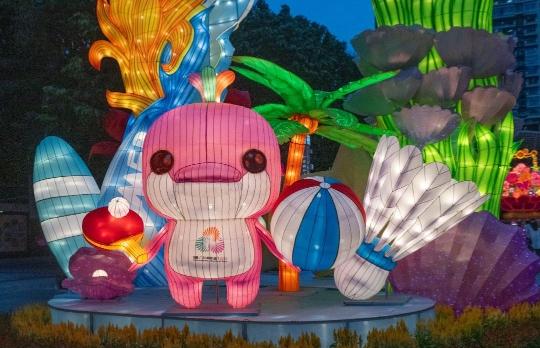 广州文化公园以“激情全运 活力荔湾”为主题,27组大中型灯组和近两千盏气氛,灯共同打造一场彩灯盛宴。