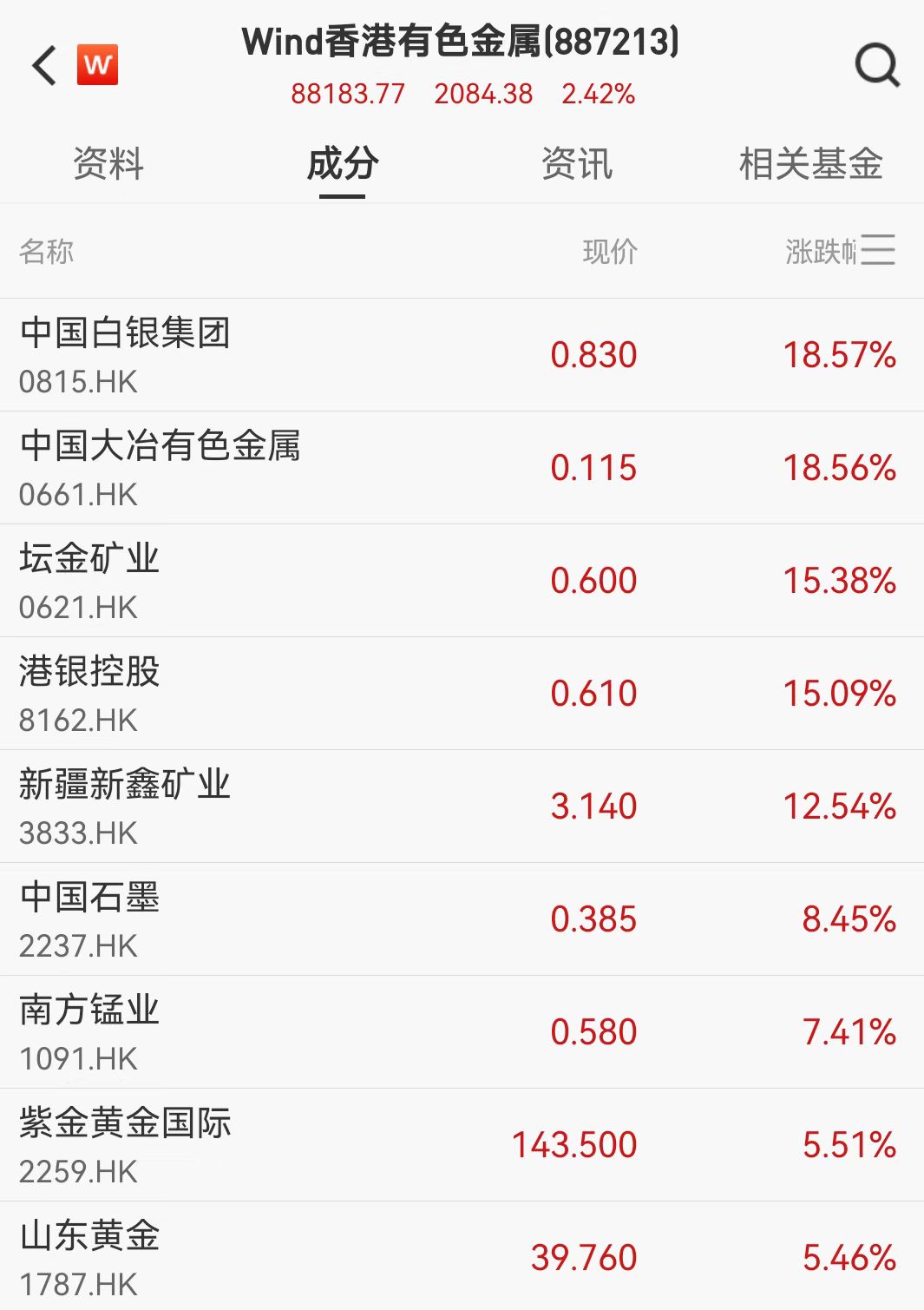 现货黄金、国际金价创新高,黄金股乘势扩大涨幅,截至午盘,中国白银狂飙18%,紫金黄金国际涨超5%。
