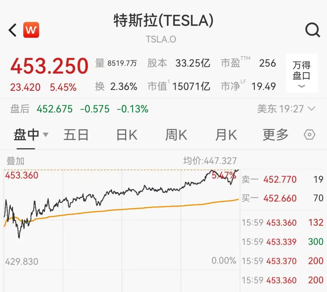 受此消息消息影响,截至美股最新收盘,特斯拉涨超5%。