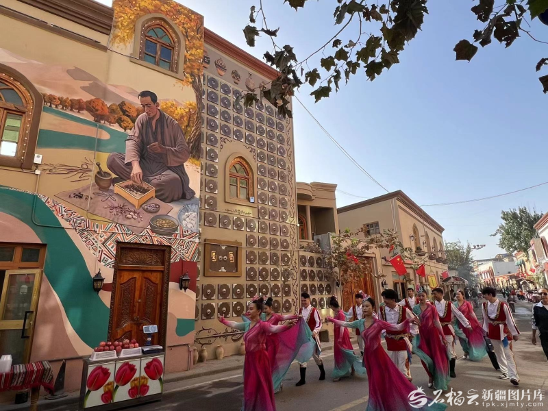 在墨玉县,老城景区的“墙上博物馆”成为游客感受文化、寄托情思的好去处。游客陈南方与爱人特意来到老街,在“在这里,向祖国致敬”的打卡点前合影留念。“早听说墨玉是丝路南道的重要节点,这面墙把古商队穿越沙漠的场景画活了,再想想现在的发展,真有种‘古今对话’的感觉!”来自乌鲁木齐市的游客张斌站在《丝路驼印》墙前,一边拍照一边感慨。