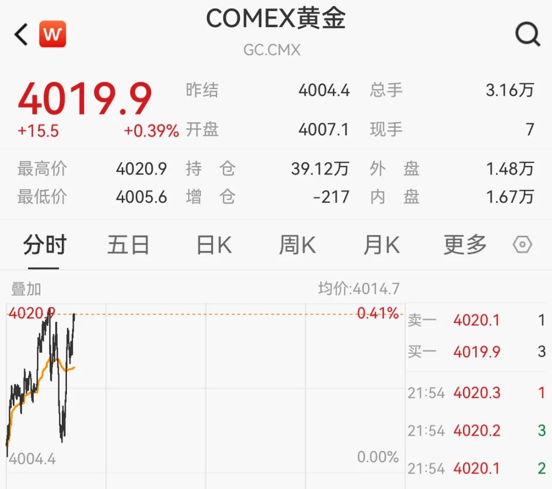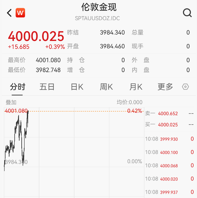 10月8日上午,现货黄金突破4000美元/盎司大关,持续创新高,年内涨幅超52%,COMEX黄金也已突破4000美元关口。