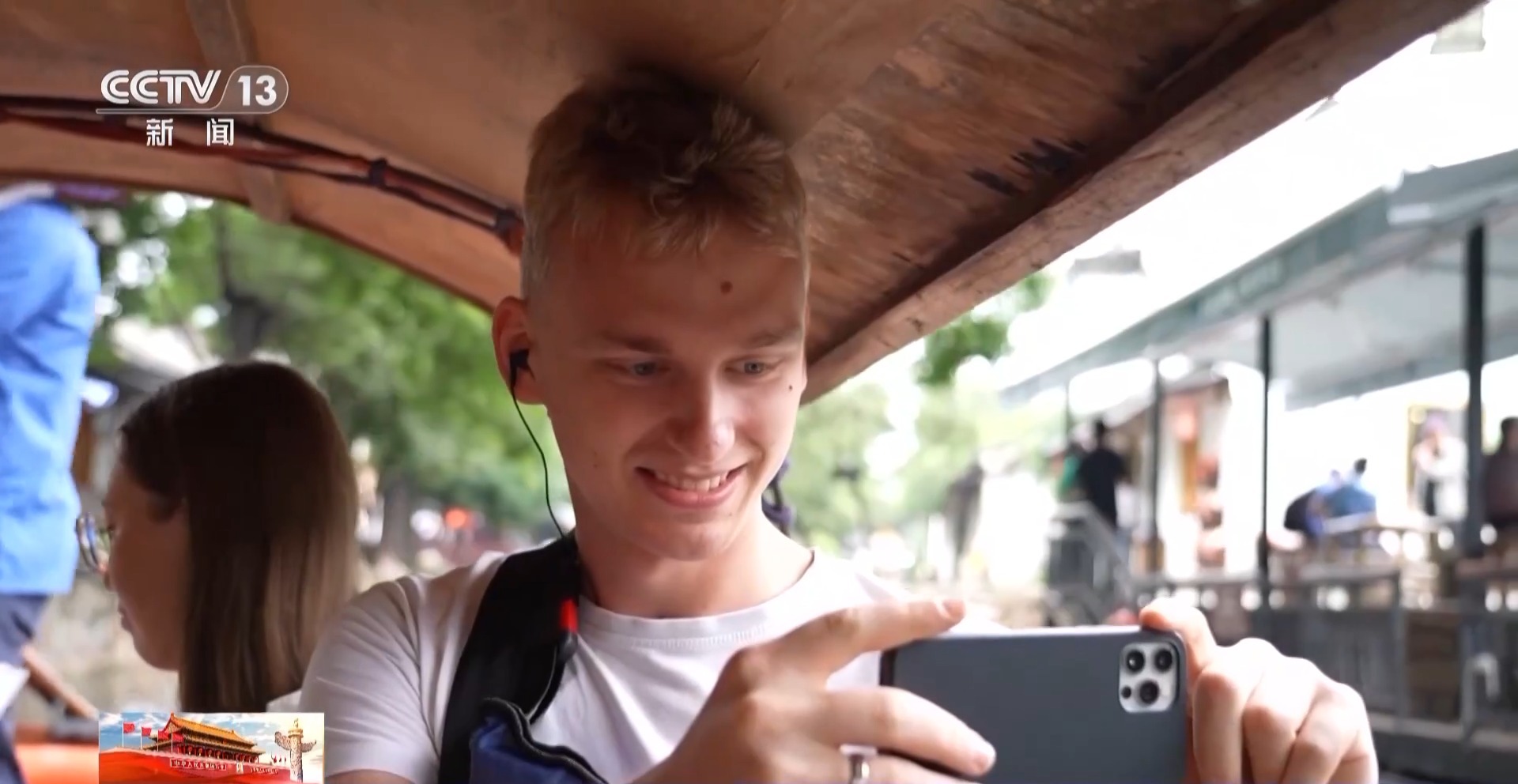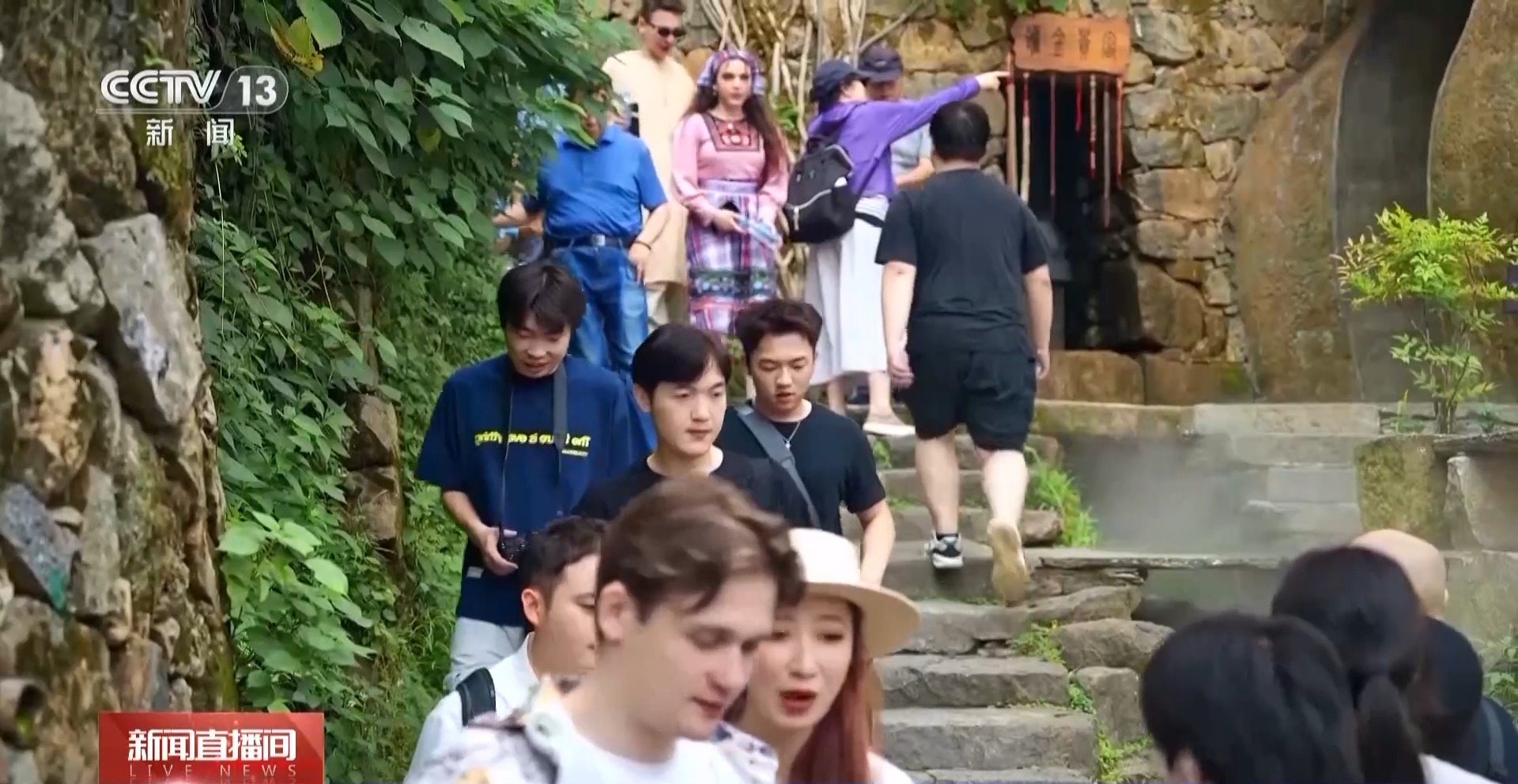 挪威游客:第一天我们去漂流,还品尝了很多当地特色美食。今天我们来村里游玩,因为我们希望真正融入中国。