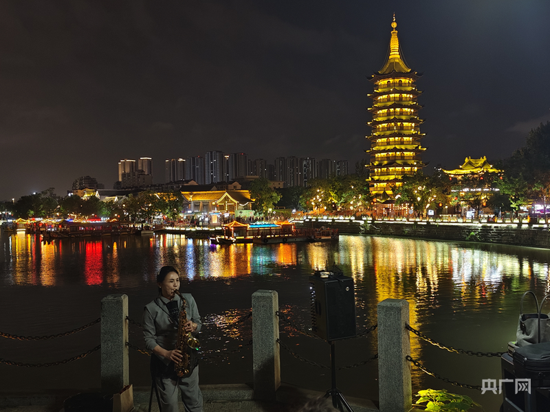 淮安里运河畔市民休闲(央广网记者 王锡斐 摄)
