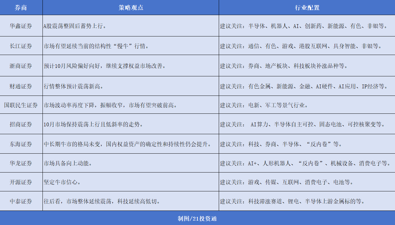 据不完全统计,目前已有30余家券商发布了10月投资组合和最新市场观点。