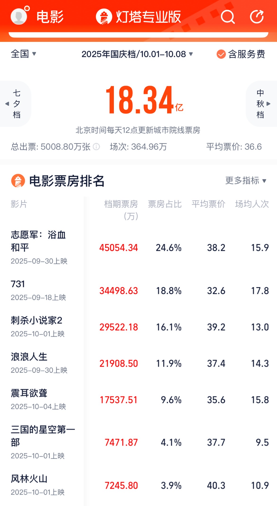 (灯塔专业版2025年国庆档电影票房数据)