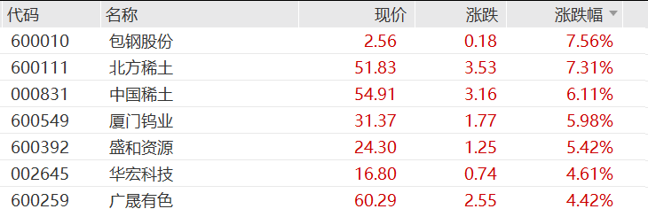 稀土概念股表现活跃,截至11:30,包钢股份涨超7%,北方稀土涨超7%。消息面上,10月9日商务部发布两条新公告,公布对稀土相关技术和境外相关稀土物项实施出口管制的决定。