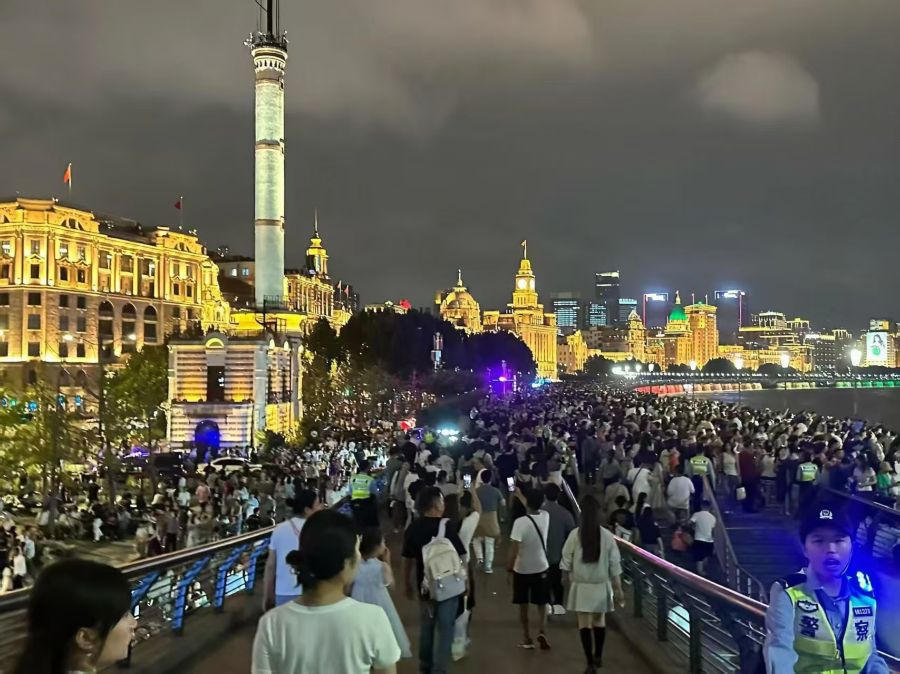 10月3日晚间的上海外滩 摄影:实习生王罕
