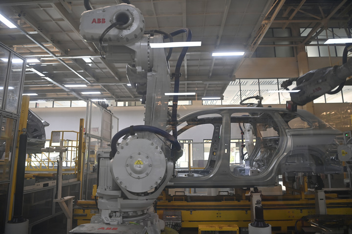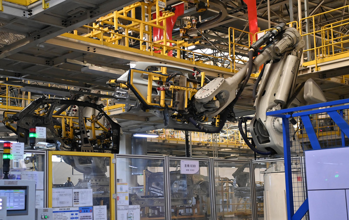 走进浙江吉利控股集团在西安投资兴建的整车生产基地,宛如置身科幻电影场景。冲压车间内,厂房宽敞、“人迹罕见”。记者看到,一条机械臂平稳抓取钢板,送入压力机模具工位,随着“轰”的震撼一声,一次冲压完成,工件被另一台机械臂抓取、转移……