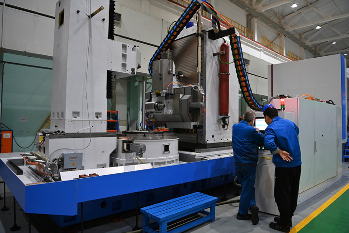 10月28日,在秦川机床工具集团股份公司总装车间,工作人员在调试机床。