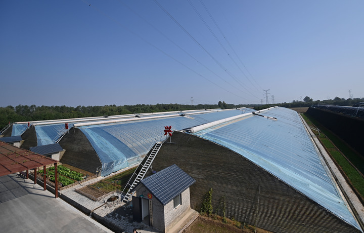 这是10月27日在高陵全季西红柿现代农业示范园(城建园)拍摄的日光温室大棚。