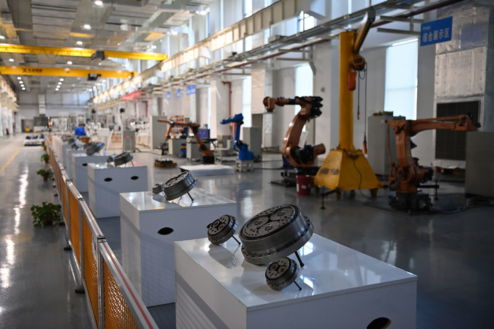这是10月28日在陕西秦川高精传动科技有限公司机器人关节减速器数字化工厂拍摄的工业机器人减速器。