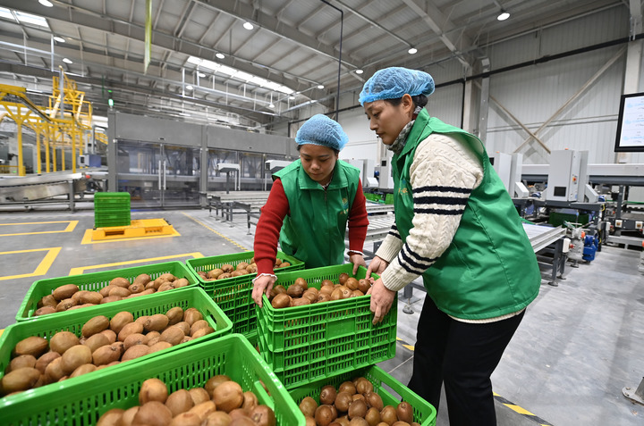 秦岭北麓,陕西省周至县的猕猴桃正迎来收获季。